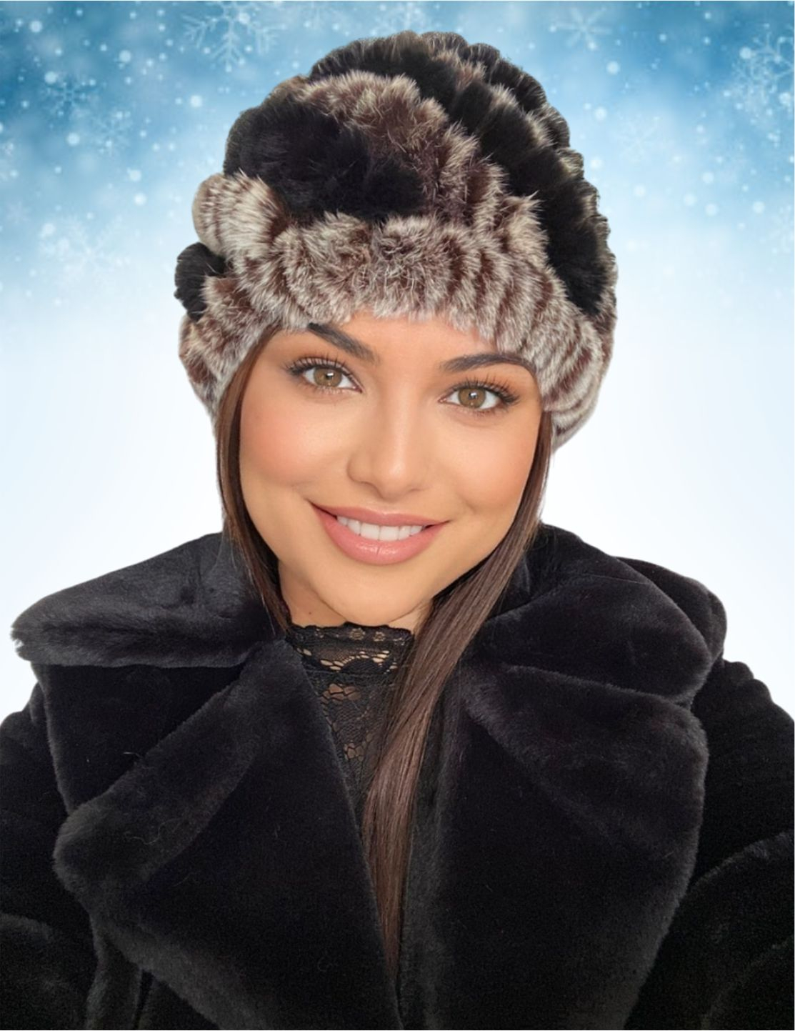 Si tu te poti bucura de o caciula de blana eleganta, moderna si calduroasa alegand noul model de caciula calduroasa de iarna Bia, o caciula de blana groasa si pufoasa, o combinatie rafinata in NEGRU si tonuri calde de MARO, distinsa si calduroasa (cu captuseala groasa pe interior), cu un stil modern si un nou design, mai elegant ca oricand- marime UNIVERSALA