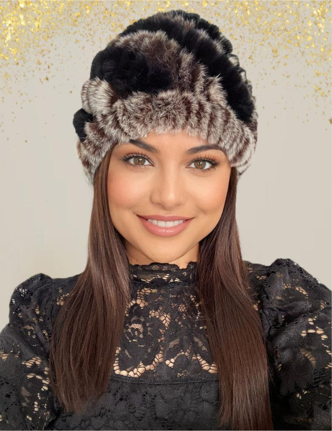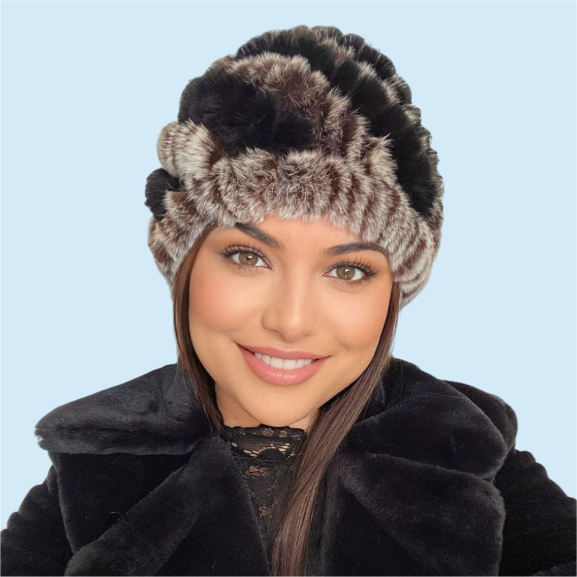 Caciula de dama din blana Bia (NEGRU+MARO) - marime universala