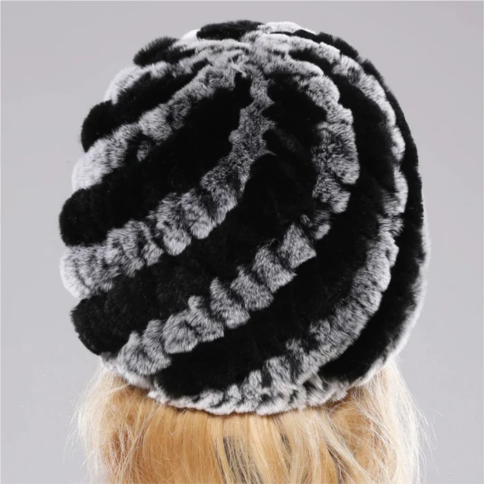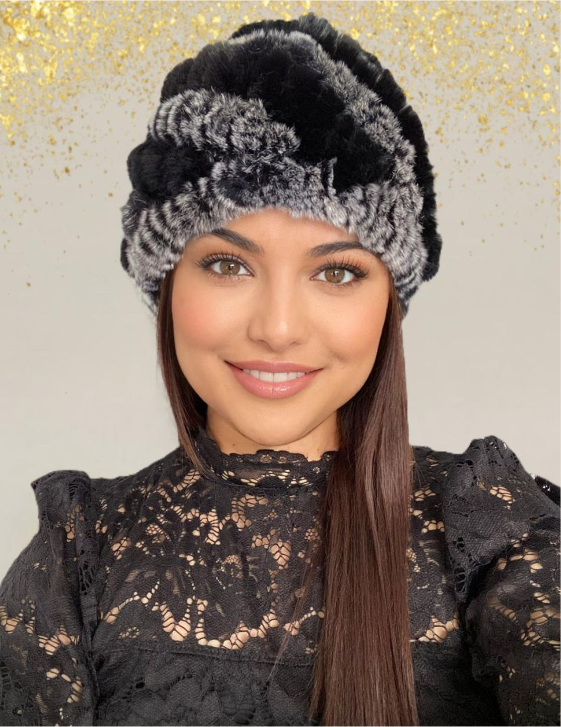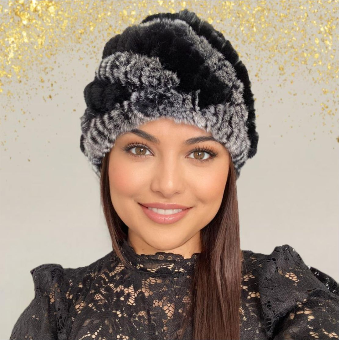 Caciula eleganta din blana ALISE (NEGRU+GRI) - marime universala