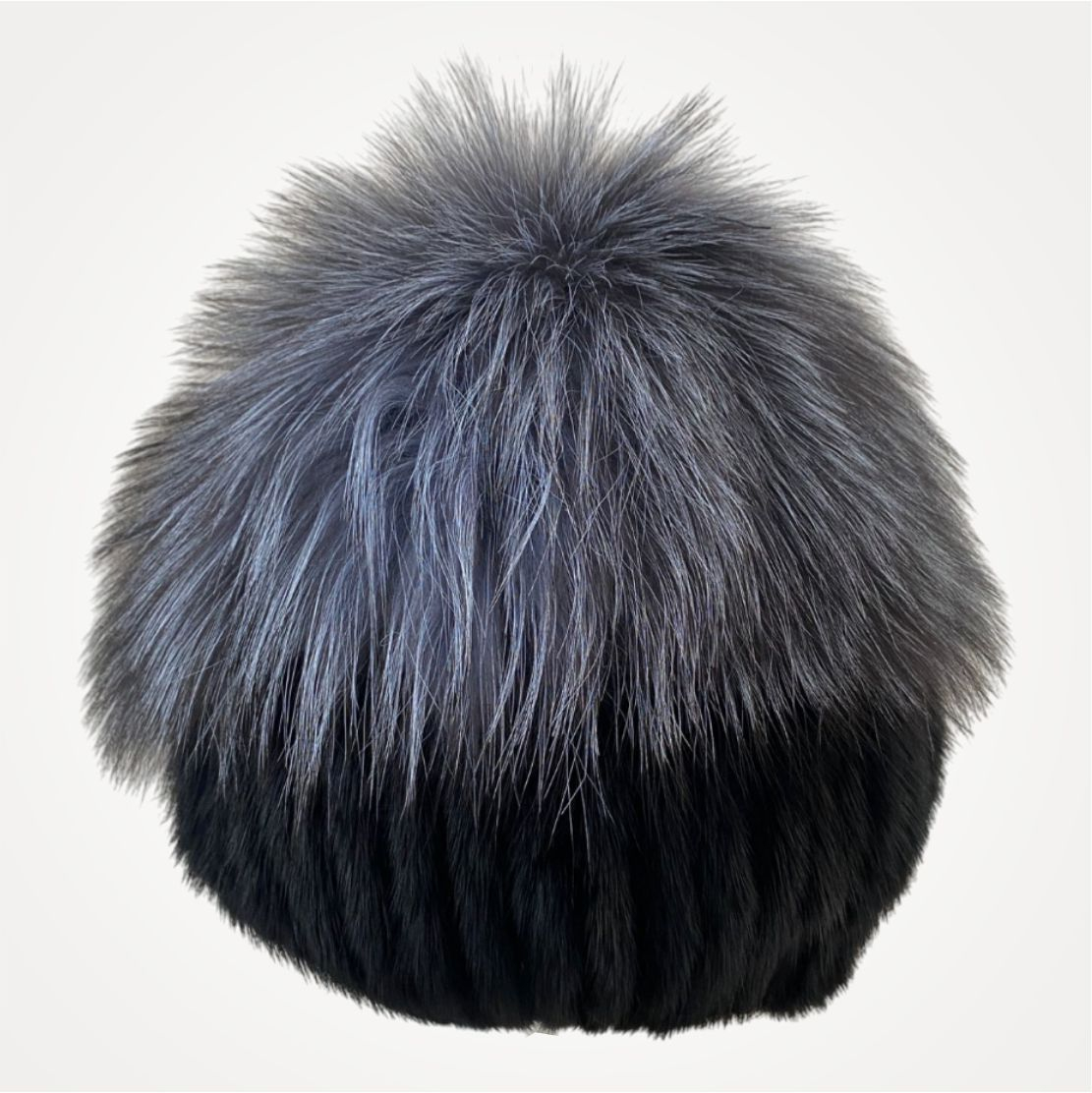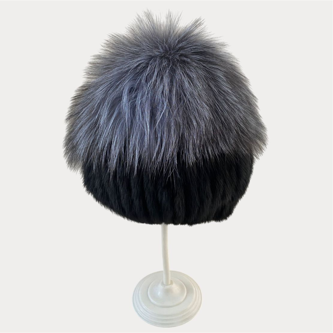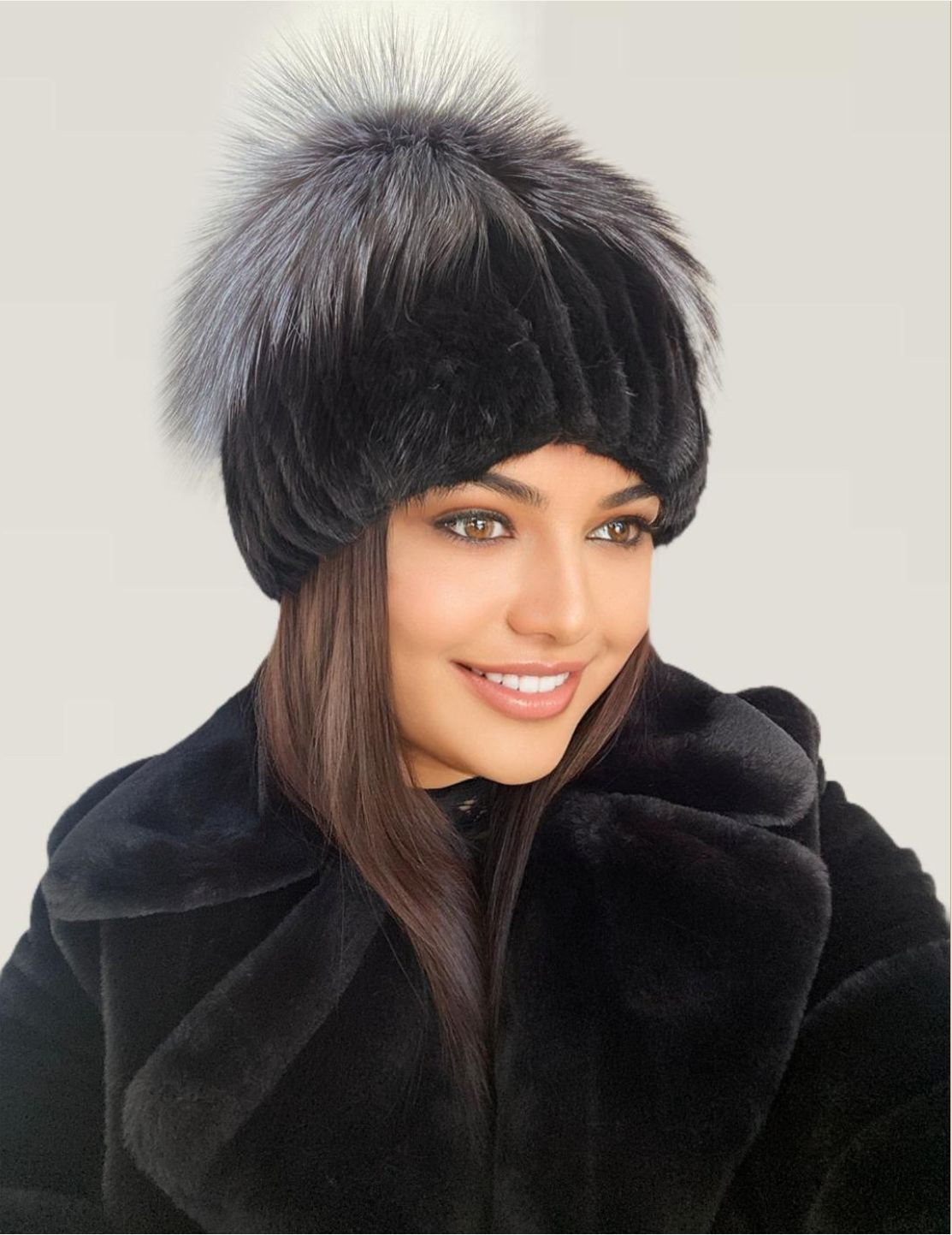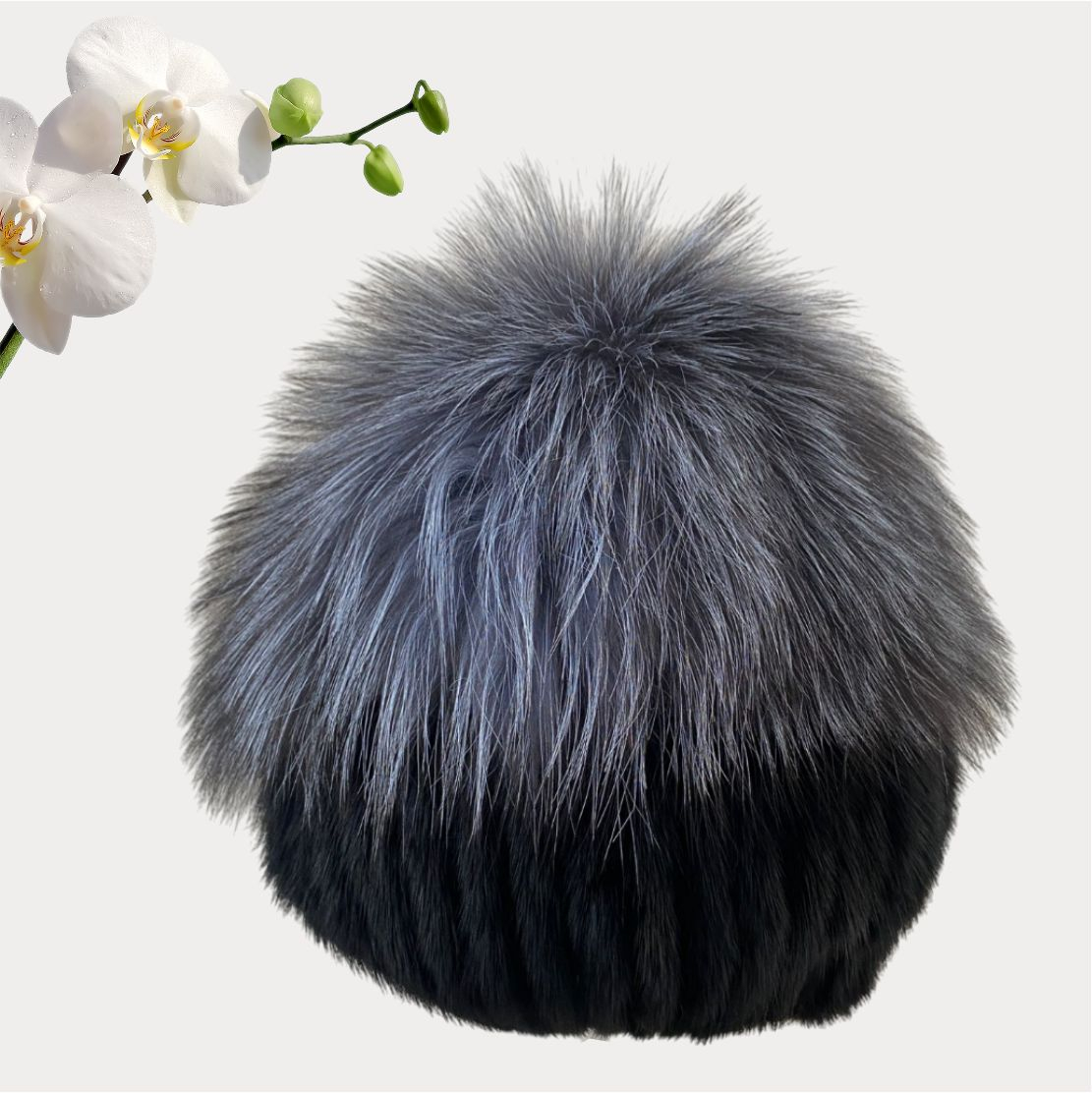 Caciula din blana sinsila + vulpe Lady Lux (NEGRU+GRI/MARO spicat) - marime universala