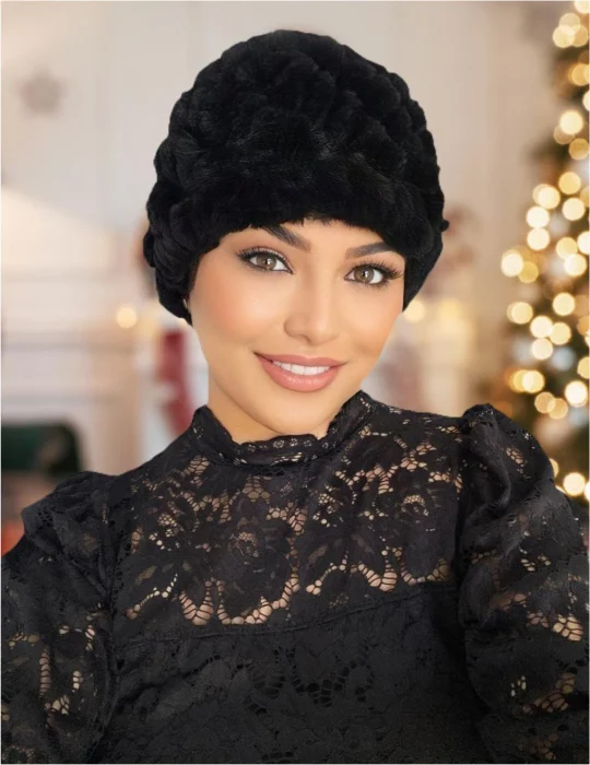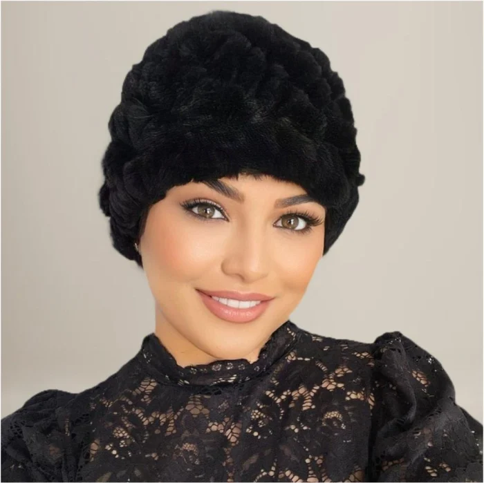 Caciula eleganta din blana ELISE (NEGRU) - marime universala