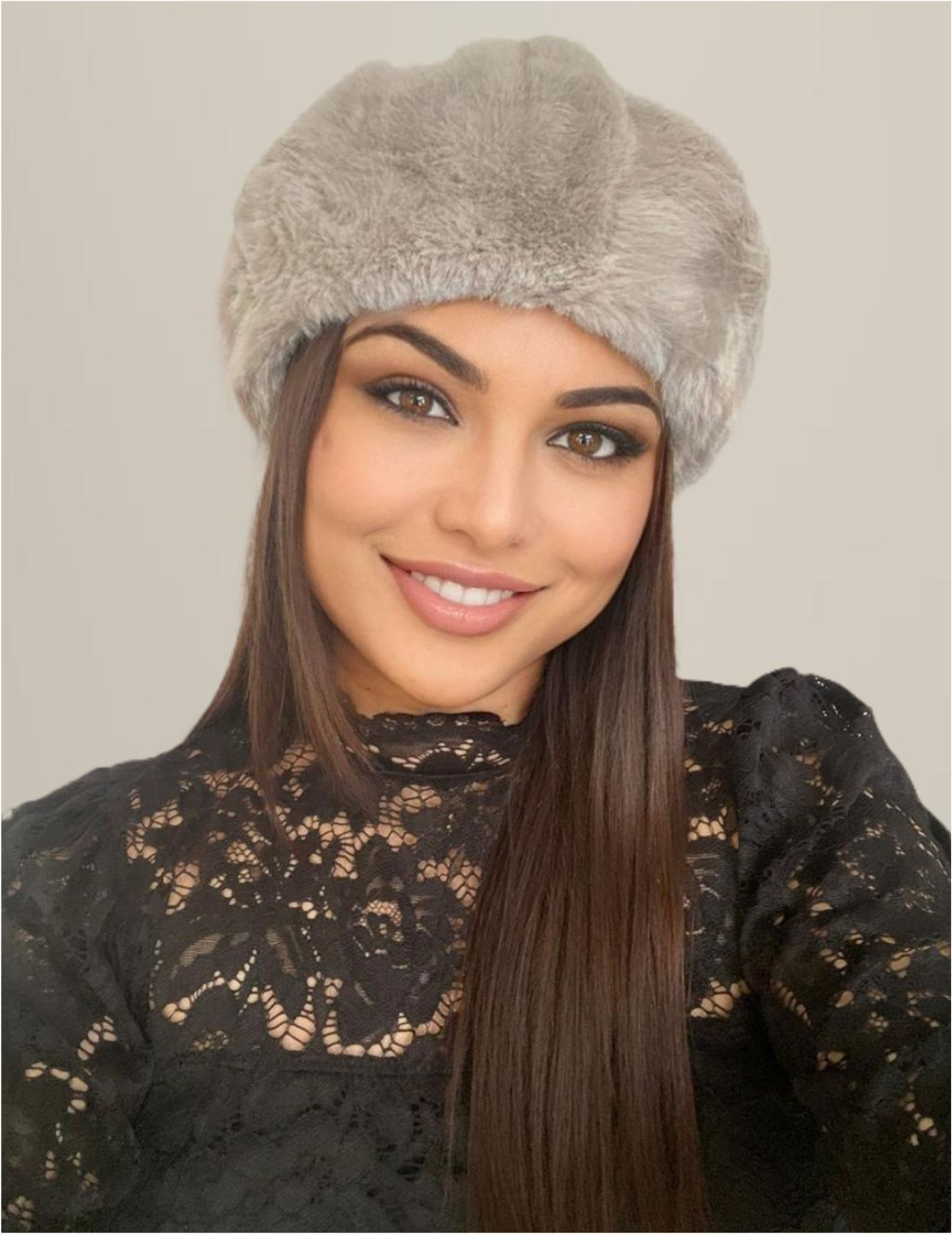 Detaliile acestui model de caciula: - Marime UNIVERSALA, reglabila: la baza caciulii, pe interior exista un snur ascuns din care caciula se poate regla pe cap in functie de preferinta fiecarei doamne (mai larga/mai stransa).