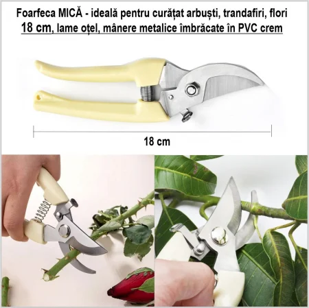 ✓ 1 foarfeca de 18 cm de gradina cu lame de otel pentru arbusti, trandafiri etc.