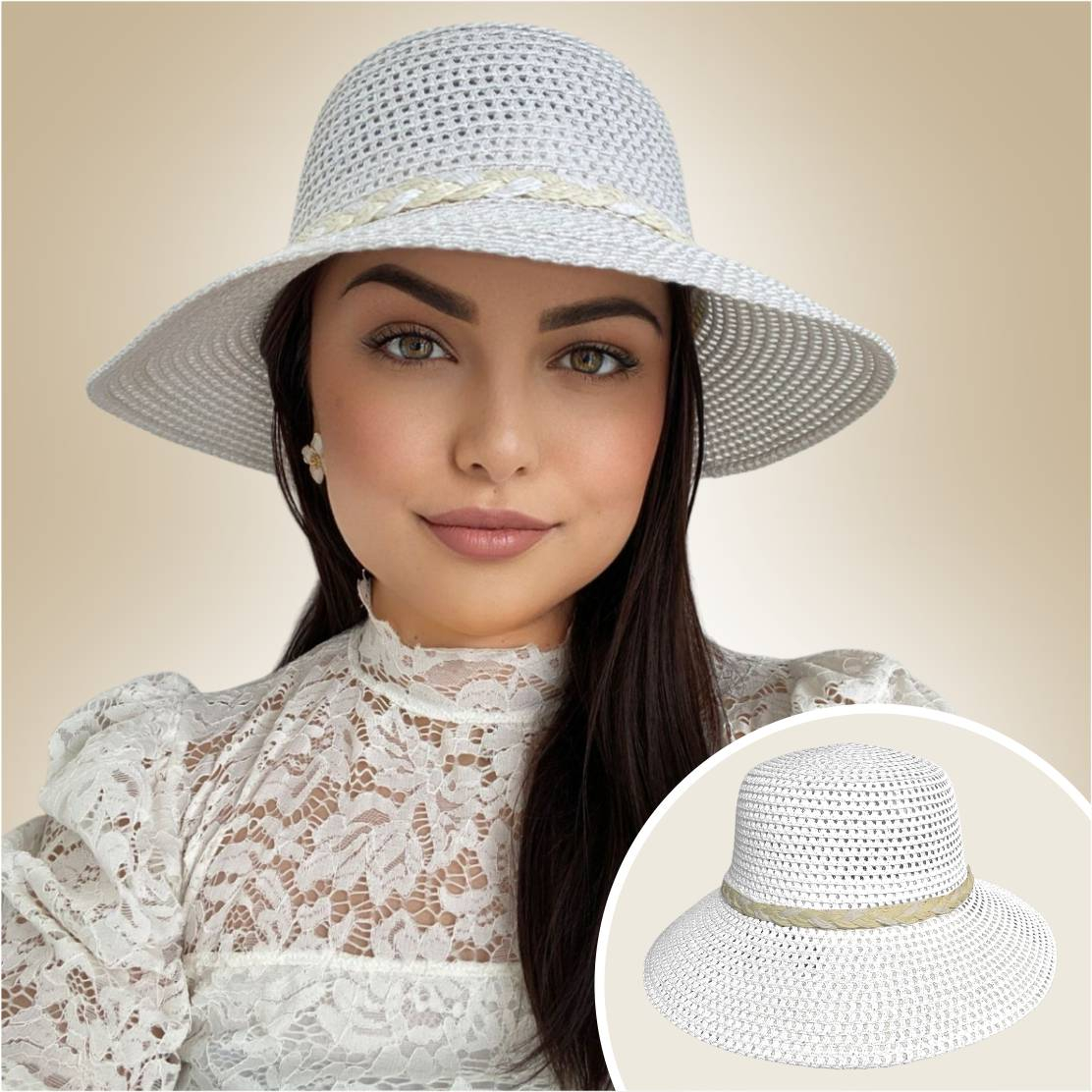 1+1 CADOU: Palarii soare cu boruri medii SIDONIA LUX (ALB+CREM) - marime unica, reglabila