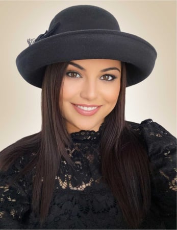 Si tu te poti bucura de o palarie de moderna si de calitate alegand noul model de palarie Gloriossa, un model deosebit de elegant cu boruri mari si generoase, usor ridicate in sus, un model in culori distinse, din fetru gros si cu prestanta si decor lateral luxuriant cu flori stilizate, pene si margeluse perlate si un nou design, mai elegant ca oricand - marime UNICA, reglabila