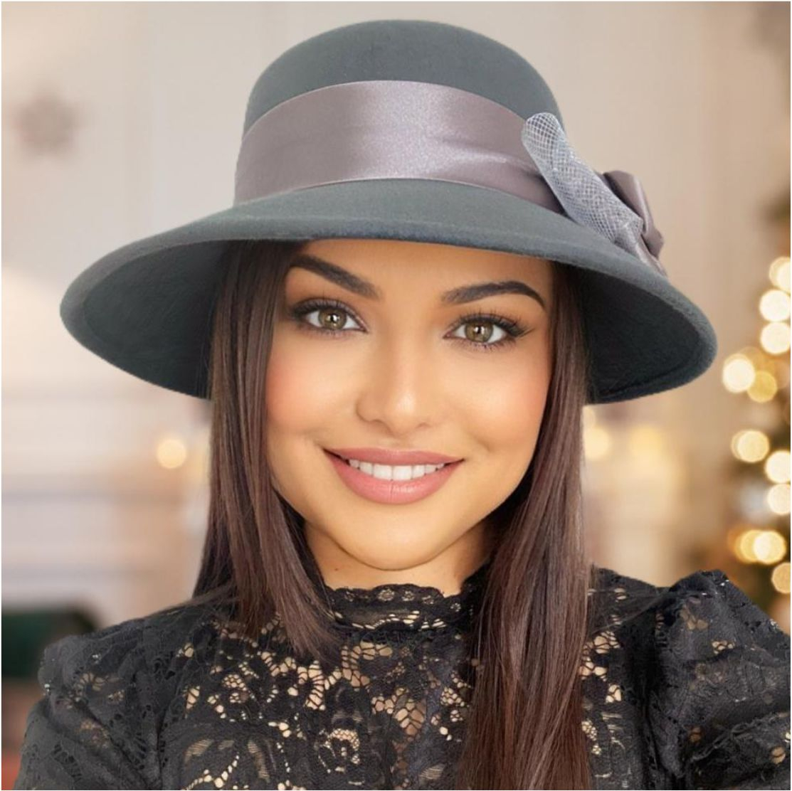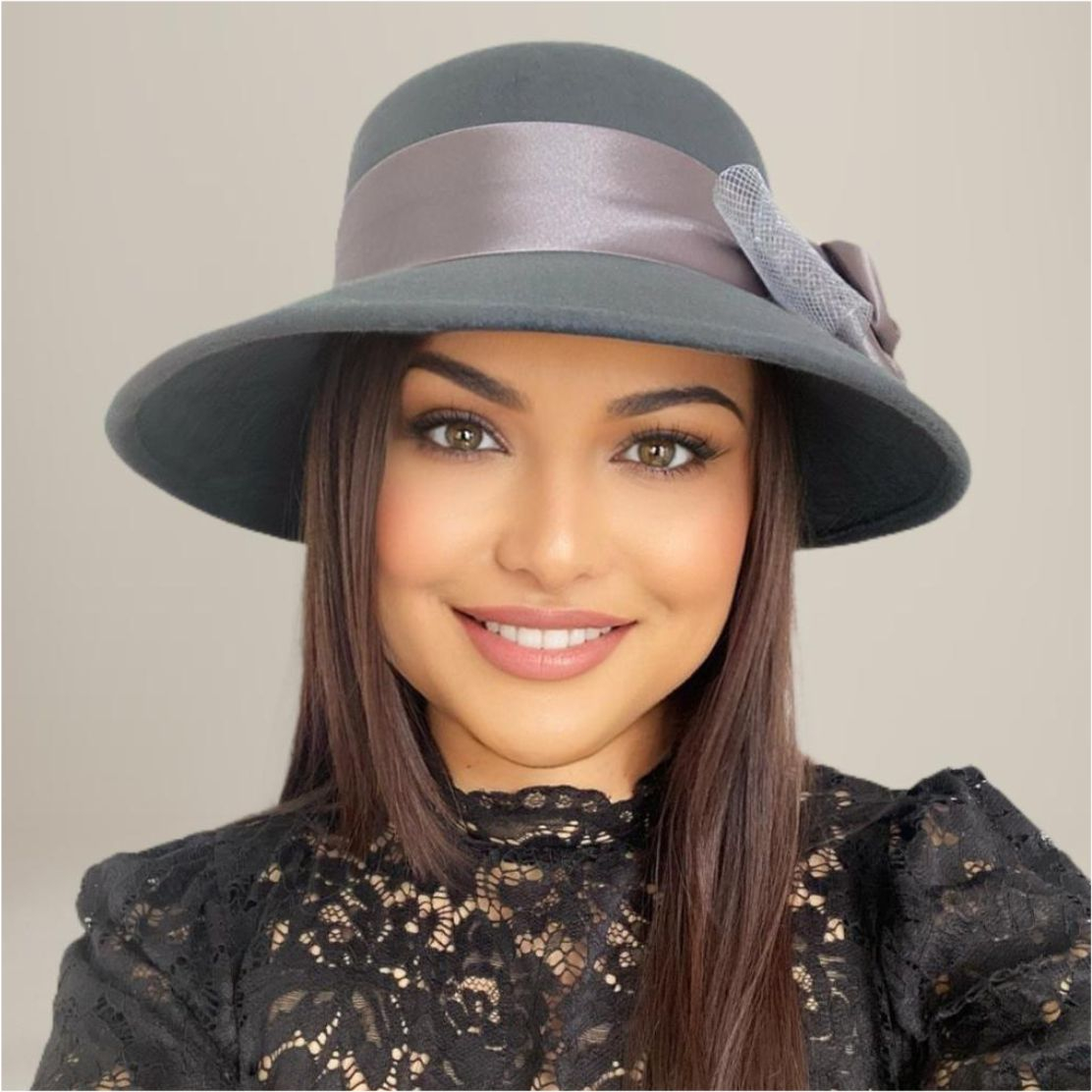 NOU! Fabricate in ROMANIA Si tu te poti bucura de o palarie de calitate, eleganta si moderna alegand noul model Veneția Lux, de un GRI distins, cu boruri elegante in stil italian, usor lasate in jos și decor luxuriant cu panglica de satin de jur imprejur, un accesoriu deosebit de elegant pentru tinutele de zi cu zi sau pentru ocazii speciale - marime unica, reglabila
