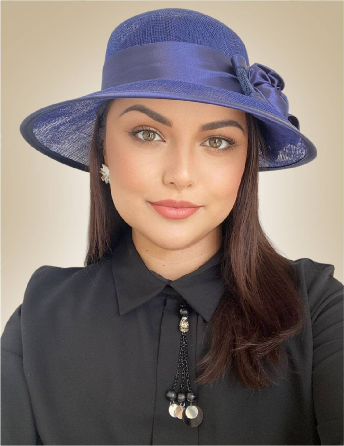 Palarie dama lux din sisal cu trandafiri din satin LADY ROSE LUX (ALBASTRU) - marime unica, reglabila