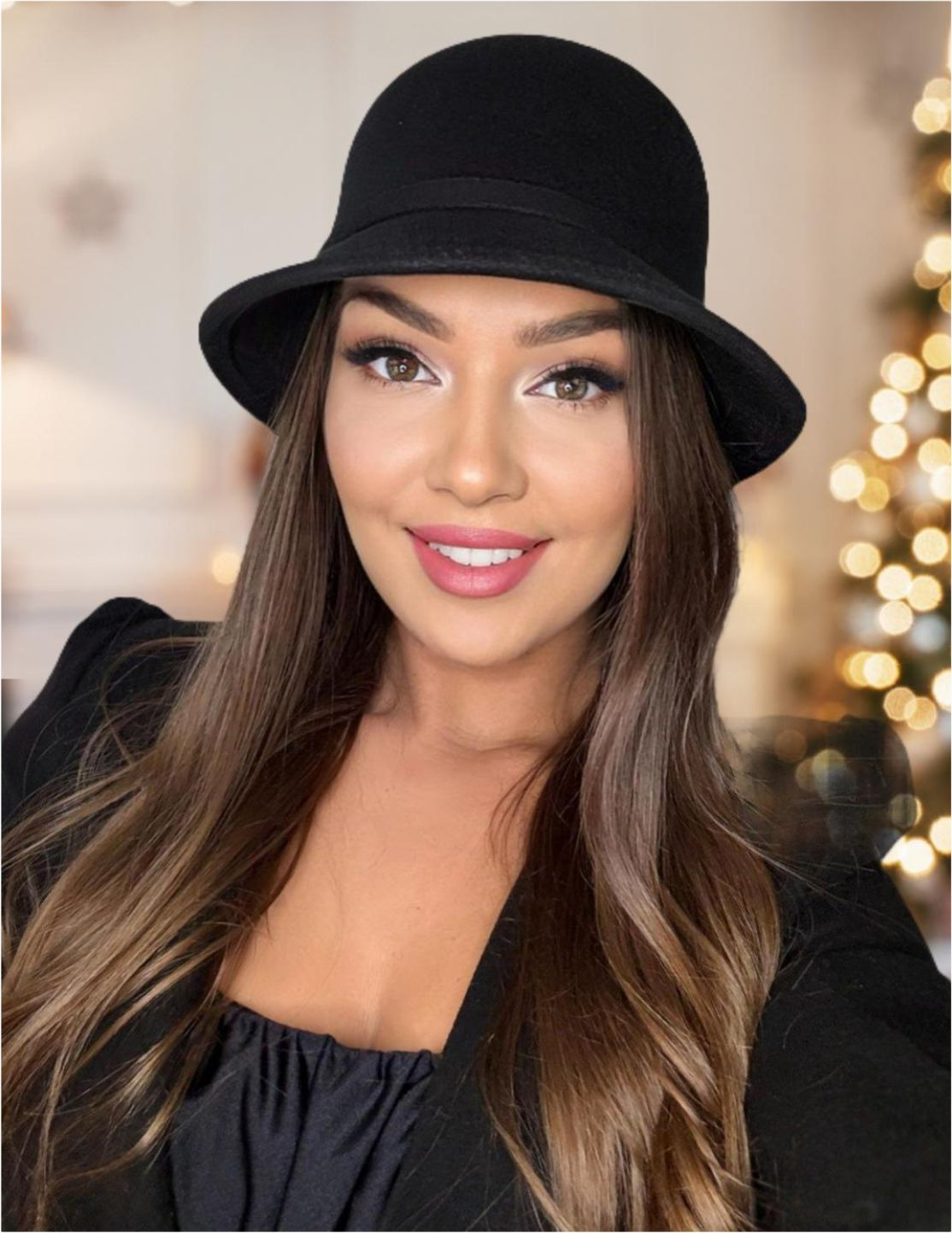 Palarii dama cu boruri rotunde MISS (NEGRU) - marime unica, reglabila