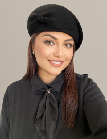• MODEL: palarie dama tip toca cu croiala moderna pe colt si funda asortata