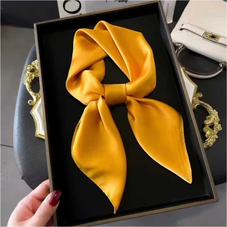 Pentru un plus de rafinament și eleganță, accesorizează-ți ținutele cu o eșarfă delicată din mătase naturală, în nuanțe distinse, ușor satinate. Fină, ușoară și plăcută la atingere, eșarfa de mătase poate fi accesoriul perfect pentru gât, păr sau geantă. Dimensiunea de 60×60 cm îi oferă versatilitate, iar textura delicată adaugă acel aer de eleganță pe care îl observi dintr-o privire. Un detaliu mic, cu efect mare — ideal pentru femeile care aleg rafinamentul fără efort.